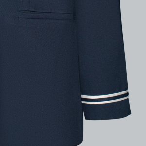 Điểm nhấn của sản phẩm nằm ở ve K thời thượng và chi tiết thêu ngực tinh tế, vừa tạo sự khác biệt, vừa tăng nét sang trọng cho tổng thể trang phục. Chất liệu vải mềm mại, đứng form, giữ dáng chuẩn nhưng vẫn thoải mái khi di chuyển cả ngày.